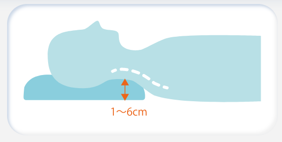 • 仰向けで寝る場合は、首の自然なS字カーブを保つために、後頭部から首にかけてのすき間が1~6cm程度になる高さを選びましょう。